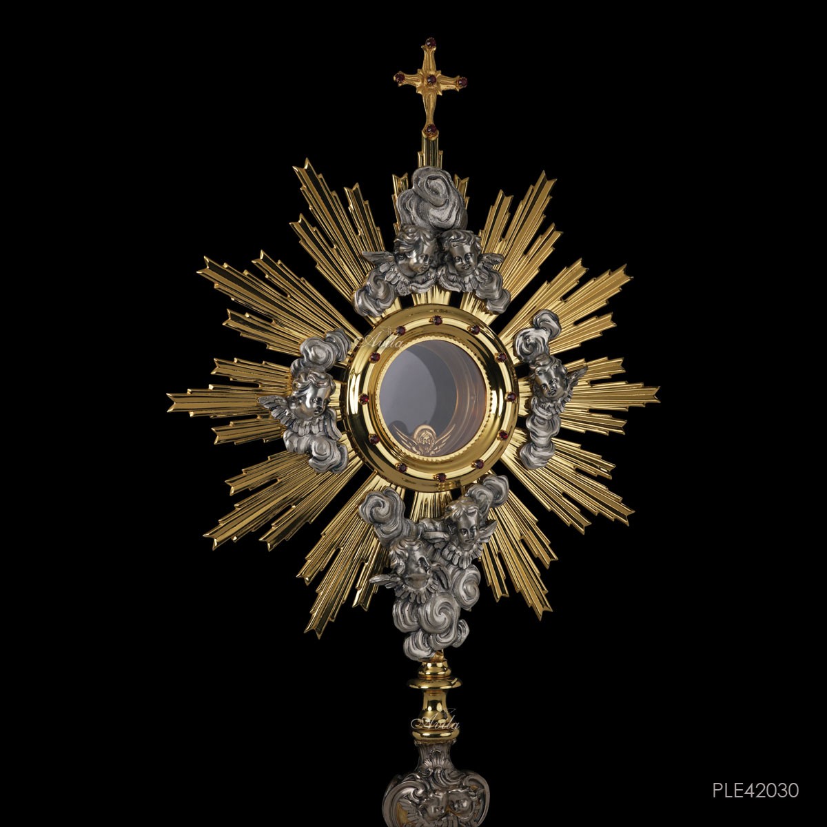 Monstrance Baroque Small Hosti 74 mm adalah alat liturgi yang memiliki peran yang sangat mendalam dalam memuliakan dan menghormati Sakramen Mahakudus. Fungsi utamanya adalah menampilkan tubuh Kristus bagi umat Katolik.