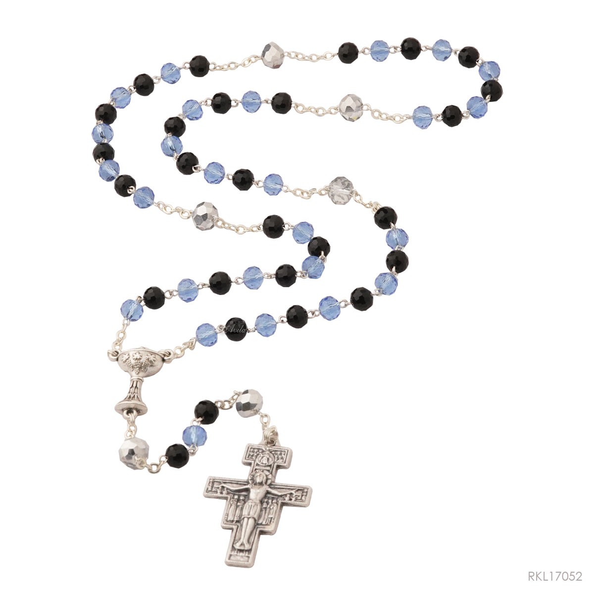 Rosario ini memiliki design salib San Damiano, yang bermakna: panggilan Tuhan untuk membangun kembali gereja, serta menjadi pengingat akan iman, penebusan dosa, dan misteri Paskah Kristus.