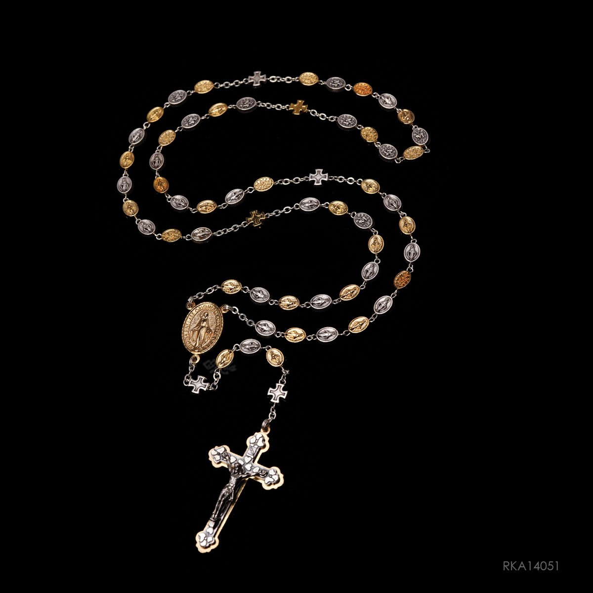 Description Rosario cantik ini memiliki butiran medali Maria Miracolosa 2 tone warna (gold & silver). Bagian pater merupakan salib malta. Bagian center pada rosario ini berupa medali Bunda Maria Miracolosa.