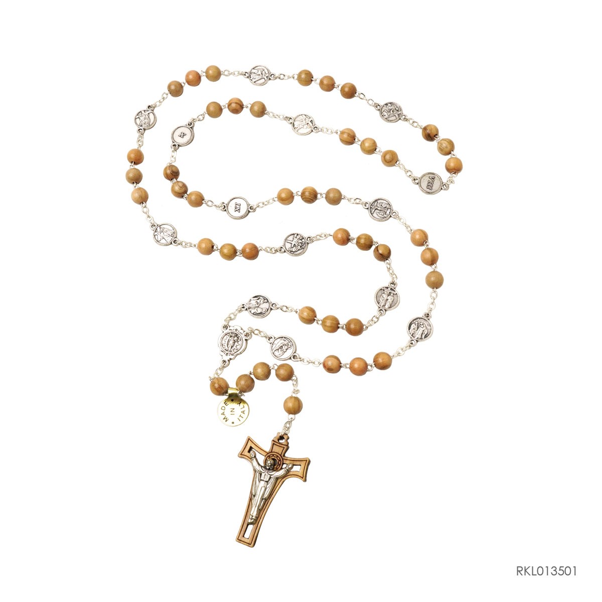 Rosario ini merupakan rosario jalan salib yang berbahan dasar olive wood. Center dan pater pada rosario ini berbahan metal. Di setiap pater, berisikan pemberhentian Jalan Salib suci.