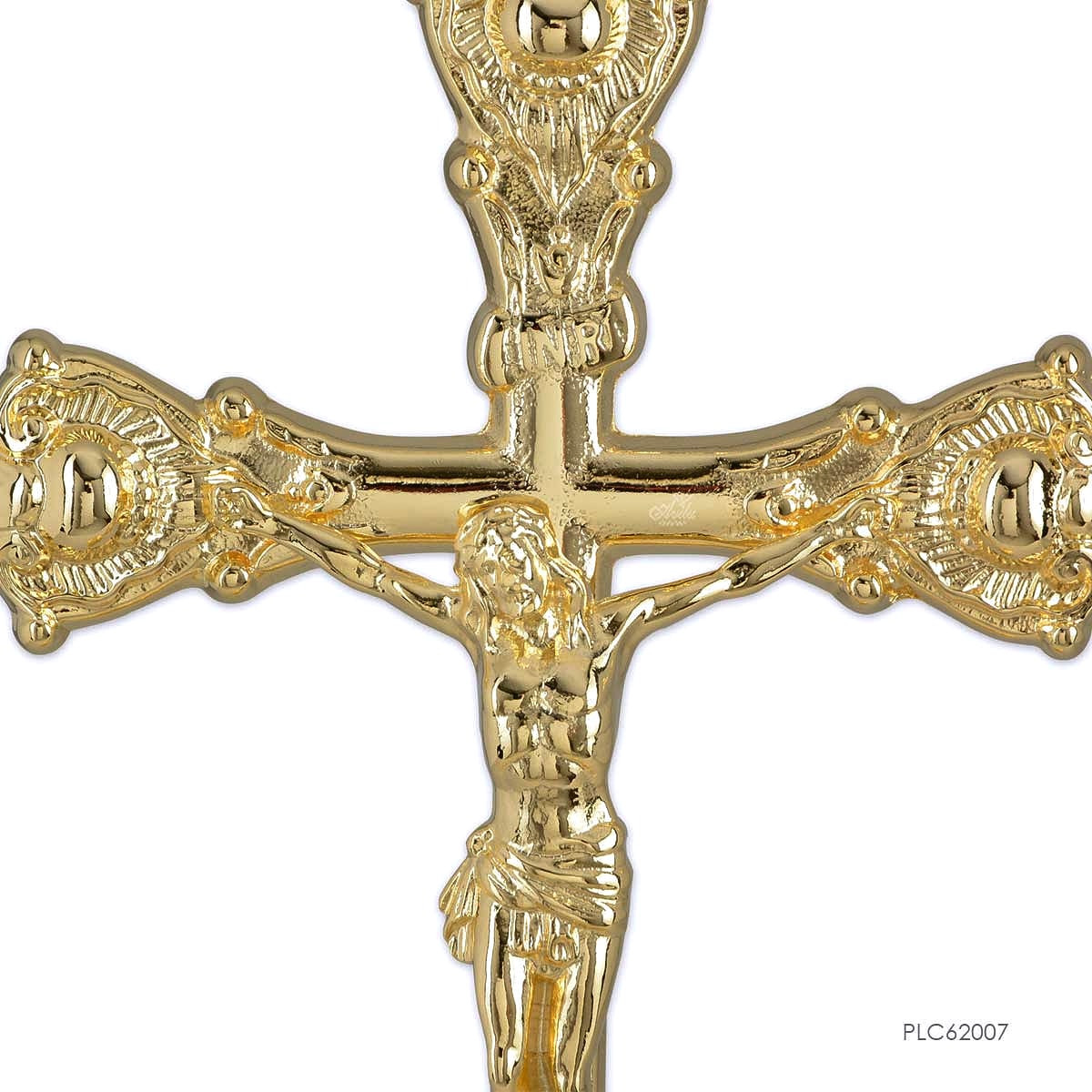 Salib ditengah-tengah altar mengingatkan kita begitu banyak makna yang baik sekali dari Liturgi Kudus. Salib menjadi lambang kurban Kristus yang unik. Salib altar ini memiliki detail yang sangat indah berbahan dasar gold plated terbaik sehingga kualitasnya pun terjamin.
