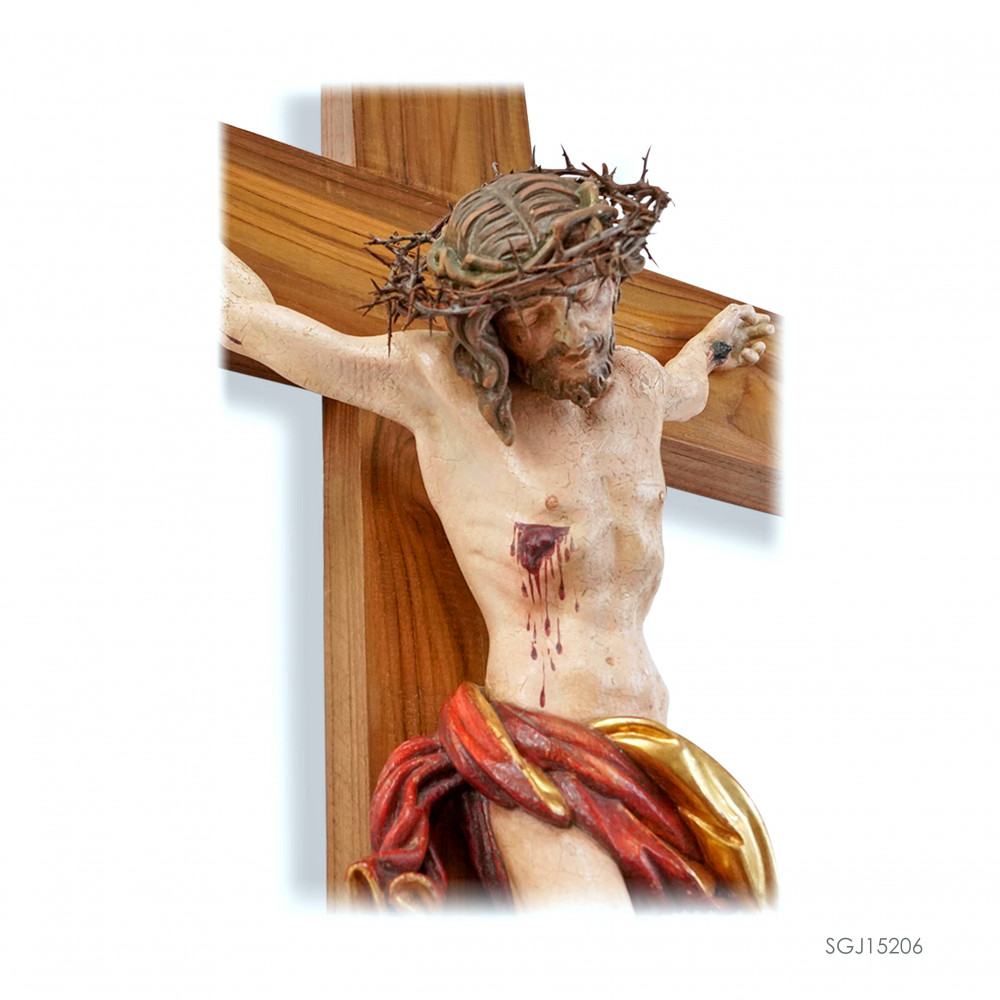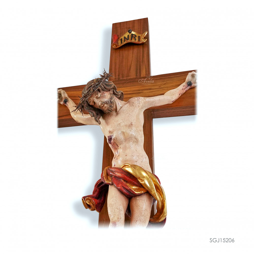 Salib merupakan lambang kemenangan Kristus. Ia rela wafat di kayu salib demi menebus dosa umat manusia. Salib digunakan sebagai simbol dan pengingat kita akan pengorbanannya yang begitu luar biasa. Salib ini digunakan dengan cara digantung. Merupakan produk lokal dengan bahan dasar terbaik berupa kayu jati. Yang paling menarik dari salib ini adalah corpus Yesus yang memakai mahkota duri sehingga detailnya semakin nyata.