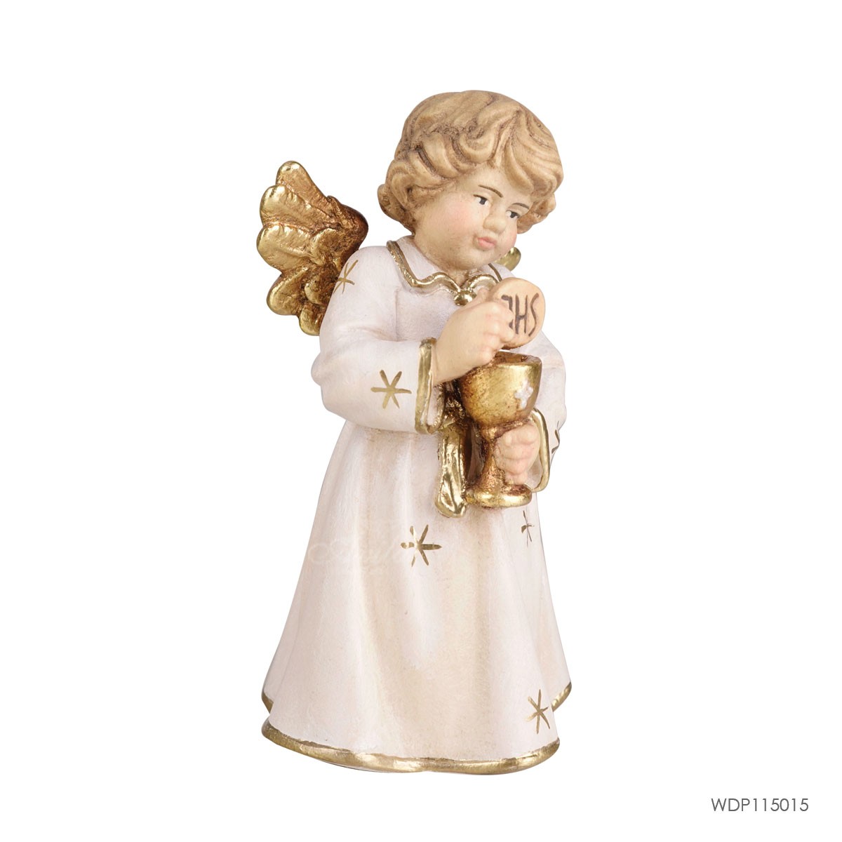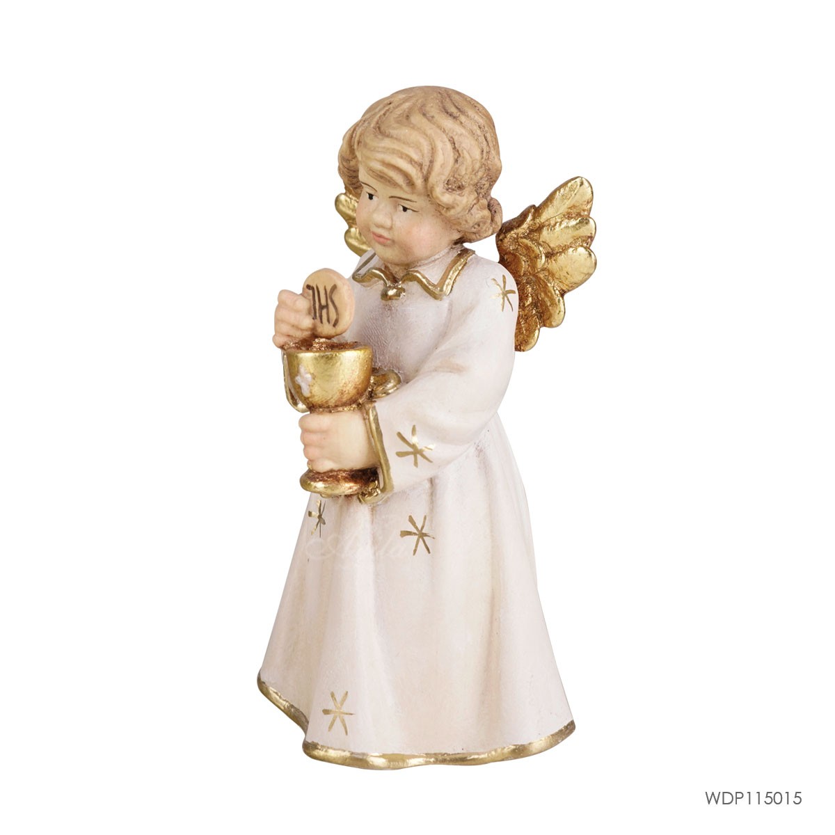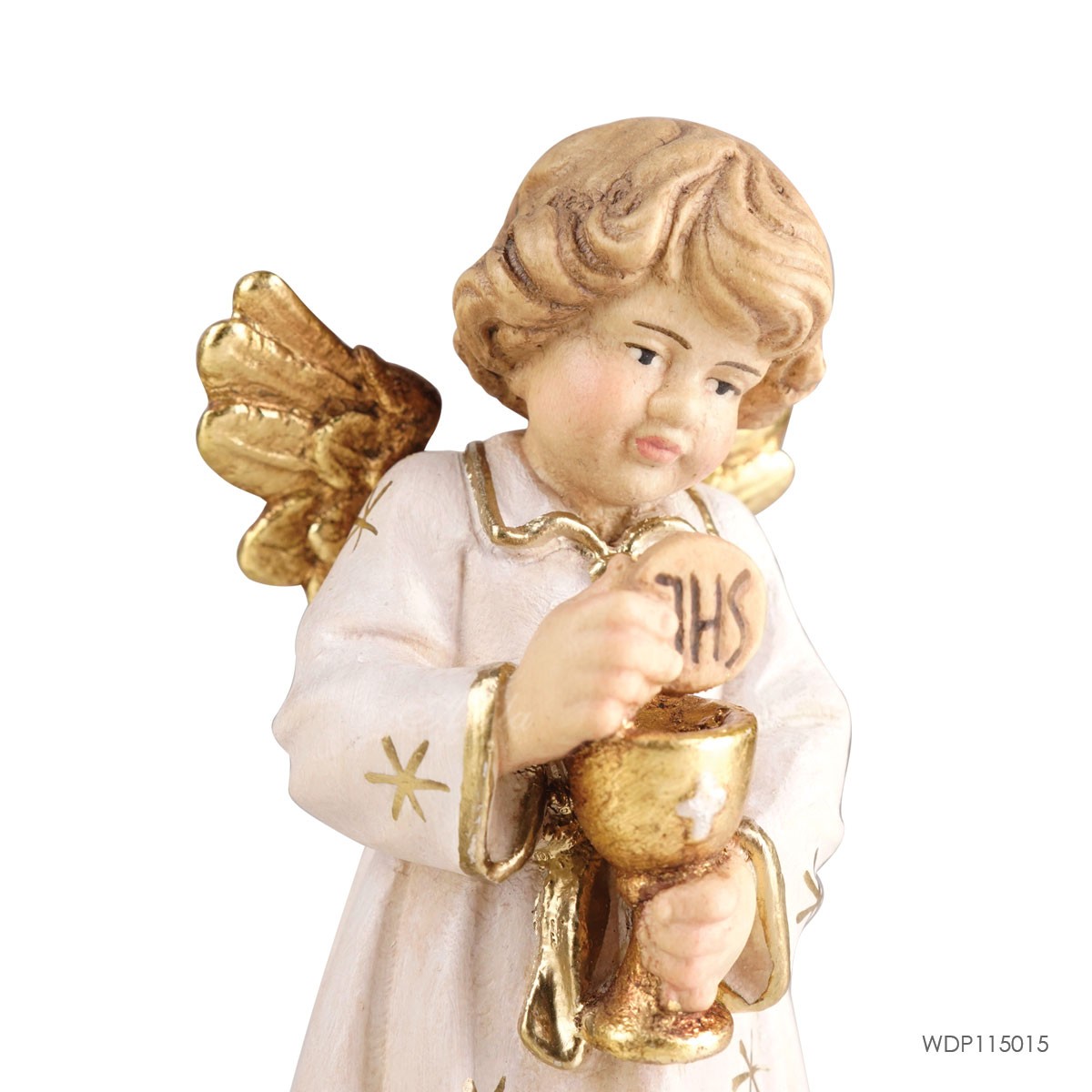Patung Angel First Communion dari bahan kayu ini dibuat di Pegunungan Tyrol, Italia Utara oleh mastercarver yang memahat patung dengan cara tradisional yang sudah diturunkan generasi ke generasi.