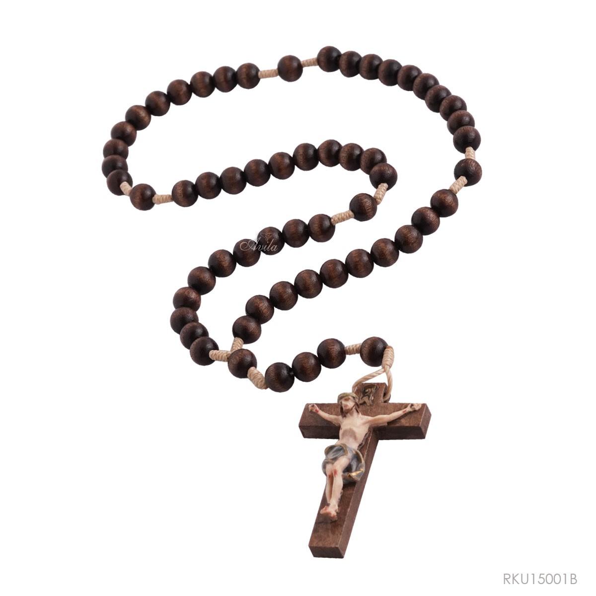 Rosario ini memiliki butiran berbahan dasar kayu alami yang diwarnai coklat serta rangkaiannya yang berbahan dasar benang kuat. Kayu yang dipilih untuk rosario ini memberikan tekstur yang nyaman saat digenggam, serta tahan lama, sehingga cocok untuk penggunaan sehari-hari dalam doa Rosario.