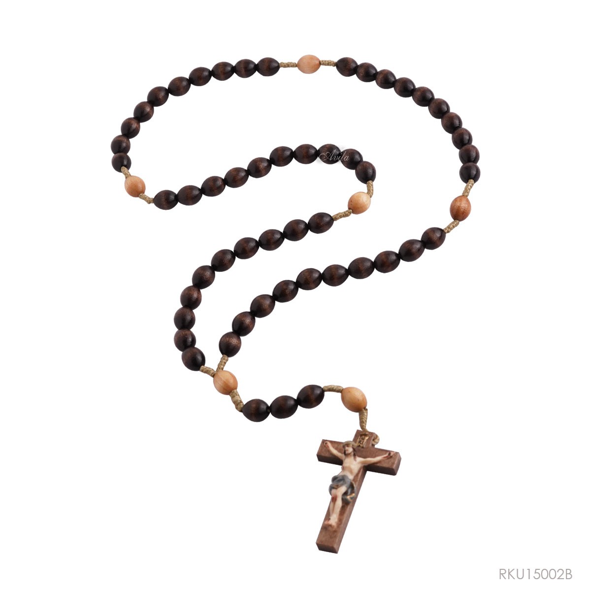 Rosario ini memiliki butiran berbahan dasar kayu alami yang diwarnai coklat serta rangkaiannya yang berbahan dasar benang kuat. Kayu yang dipilih untuk rosario ini memberikan tekstur yang nyaman saat digenggam, serta tahan lama, sehingga cocok untuk penggunaan sehari-hari dalam doa Rosario.