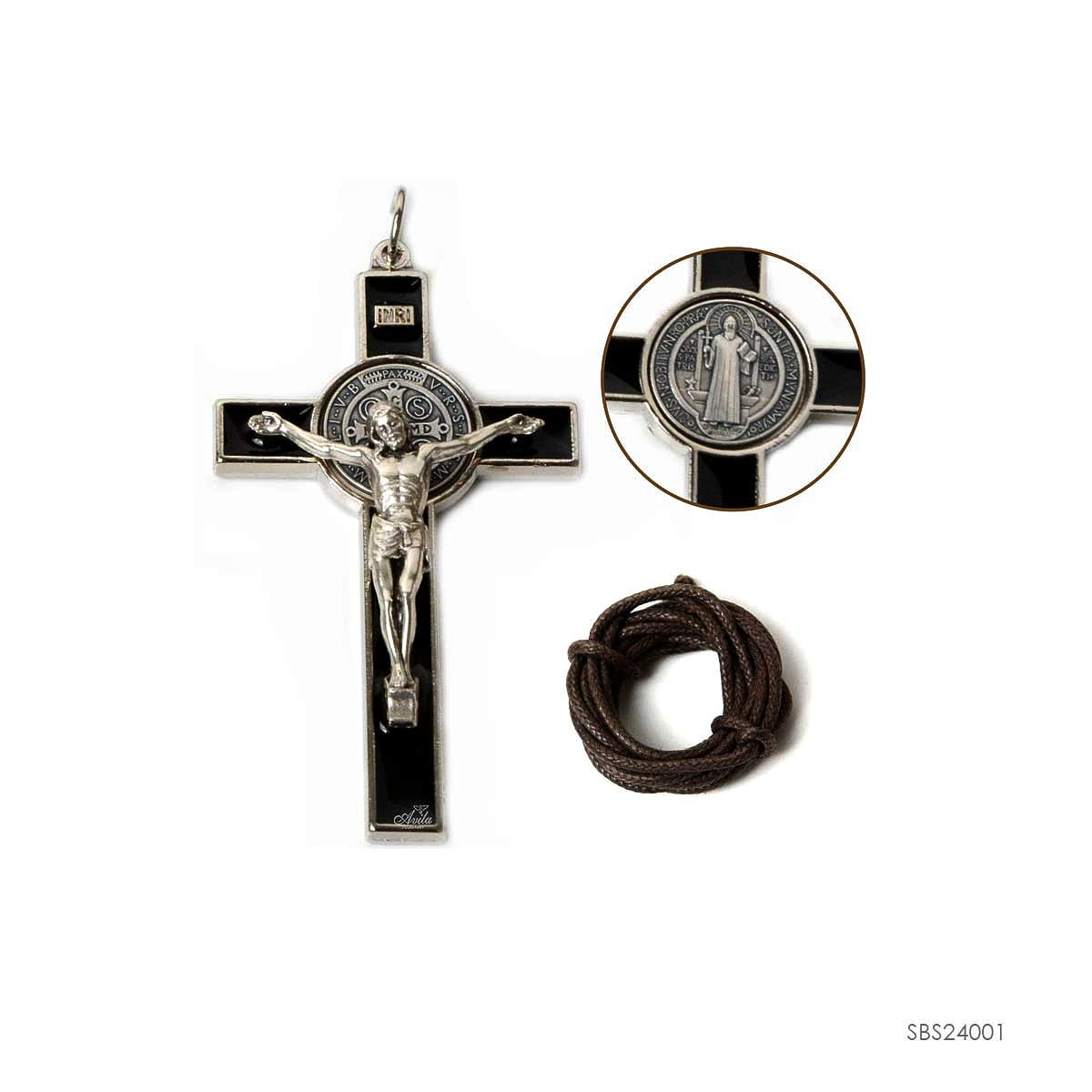 Salib bandul ini memiliki ukiran medali St. Benediktus di tengah salib dengan bahan dasar sterling silver.