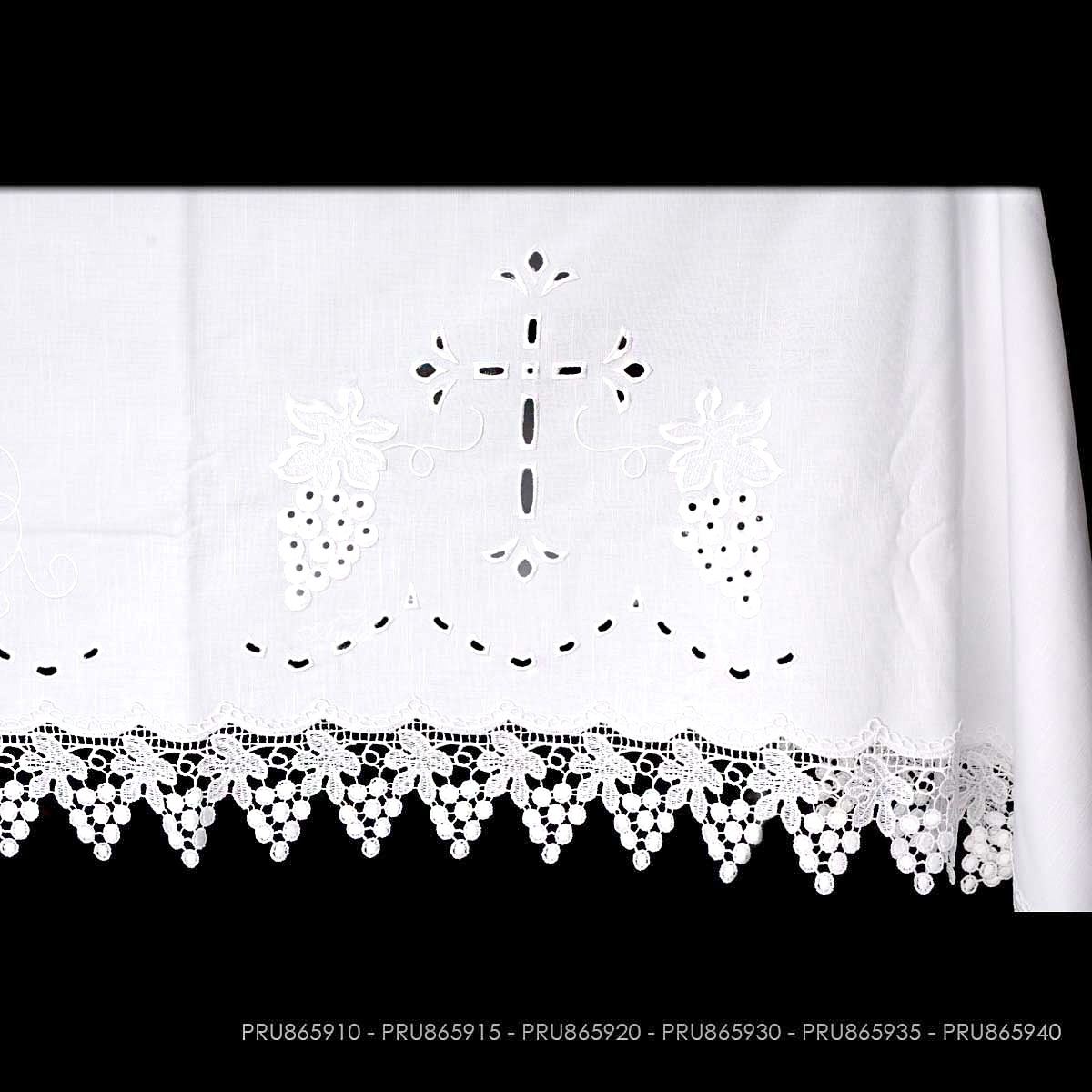 Taplak Meja Altar Motif Cross, IHS, Anggur dan Gandum